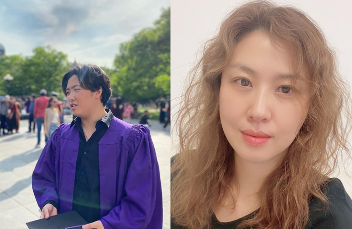 사진에는 김성경의 아들이 보라색 졸업 가운을 걸친 채 기념사진을 촬영하고 있다. 아들은 김성경과 똑 닮은 외모로 눈길을 끌었다.