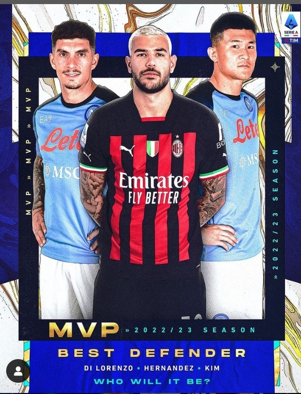 세리에A 사무국은 31일(한국시간) 소셜 미디어를 통해 수비수 MVP 후보 3인으로 김민재와 조반리 디 로렌초(이상 나폴리), 테오 에르난데스(AC밀란)를 꼽았다. 센터백으로는 김민재가 유일하게 이름을 올렸다.