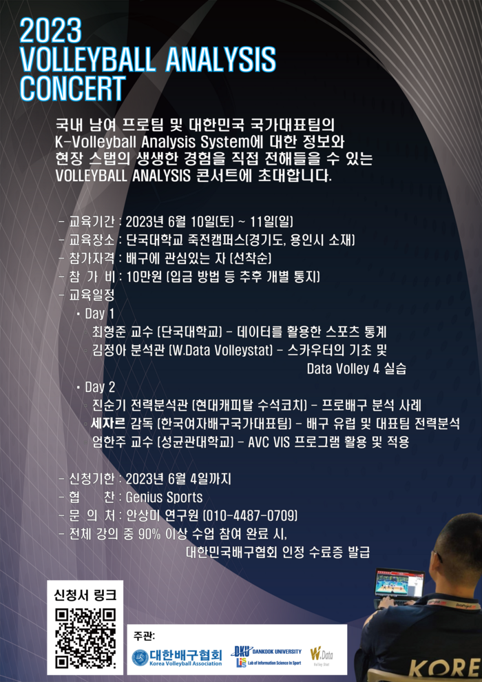 배구협회가 주관하는 2023 배구 분석 콘서트는 내달 10일부터 11일까지 2일간 단국대학교 죽전캠퍼스에서 진행된다.