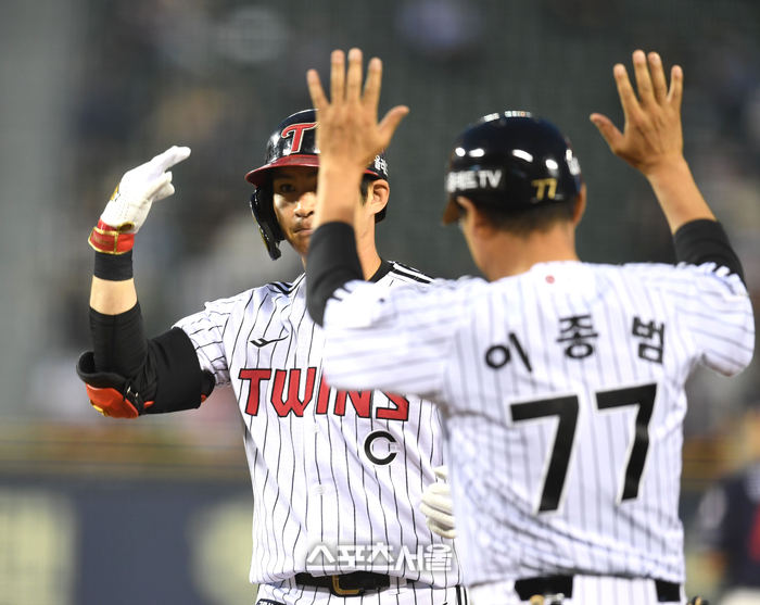 LG 오지환이 31일 잠실야구장에서 열린 2023 KBO리그 롯데와 경기 5회말 무사1루 우전안타를 친 후 세리머니를 하고 있다. 2023. 5. 31. 잠실 | 최승섭기자 thunder@sportsseoul.com