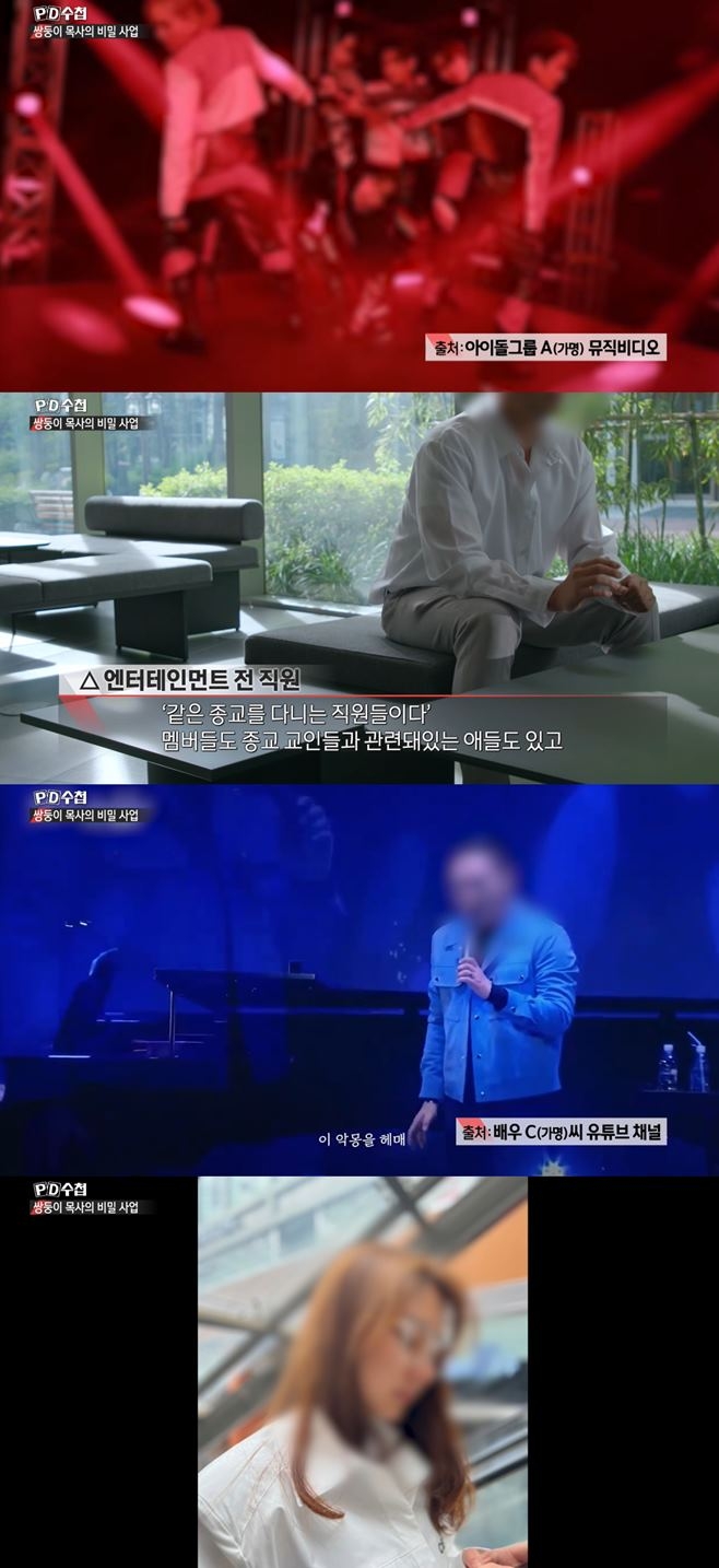 또 해당 기획사의 대표인 20대 초반 이모씨가 쌍둥이 목사와 밀접한 관계가 있다는 의혹도 제기했다. 아울러 A엔터테인먼트 전 직원은 “아이돌 멤버 일부도 교회와 관련이 있다”고 증언했다. 실제로 ‘PD수첩’을 통해 교회 신도들이 해당 기획사로 출퇴근하는 모습이 포착됐다.