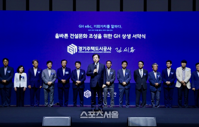GH는 이날 수원컨벤션센터에서 대우건설, DL이앤씨 등 16개 시공사, 건원, 도화 등 17개 엔지니어링사 대표들, GH 사업지구 23명 현장소장들이 참석한 가운데 공정·인권·혁신·품질 등 건설분야 4대 부문 과제를 발표하고, 이의 실행을 다짐하는 상생 협약을 맺었다.