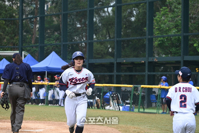 대표팀은 2회초 2점을 헌납하며 3-3 동점을 내줬지만, 2회말 빅이닝을 만들며 7-4로 앞서갔다. 2회말 이지아가 볼넷으로, 장윤서가 상대 포수의 타격 방해로 무사 1,2루 찬스를 만들었고 이빛나가 몸에 맞는 볼로 출루해 무사 만루가 됐다.