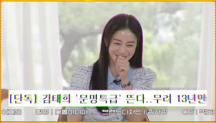 재재는 “오랜만에 예능 나들이한다고 ‘단독’ 달고 기사가 나왔더라”라고 전했다. 김태희는 쑥스러운 미소를 지었다.