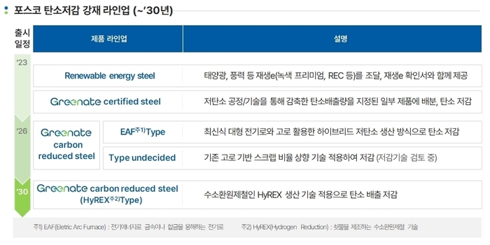 앞서 포스코는 지난 1일 서울 강남 포스코센터에서 국내 주요 고객사를 초청해 ‘탄소 저감 제품 출시 계획 설명회’를 열어 자사의 2050 탄소중립 로드맵을 소개하고 2030년까지 출시될 탄소 저감 제품군을 공개했다.