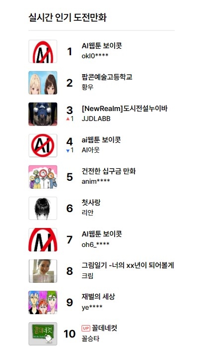 네이버웹툰 도전만화는 지난 2일~3일 ‘AI웹툰 보이콧’이라는 제목의 게시글이 수십개 올라와 눈길을 끌었다. 도전만화는 네이버웹툰이 운영하고 있는 아마추어 창작자들을 위한 플랫폼이다. 누구나 웹툰을 만들어 게시할 수 있는 곳으로 최근 AI가 그린 웹툰이 꾸준히 올라오는 것과 관련해 창작자들 사이에 찬반 의견이 첨예하게 오가는 분위기다.