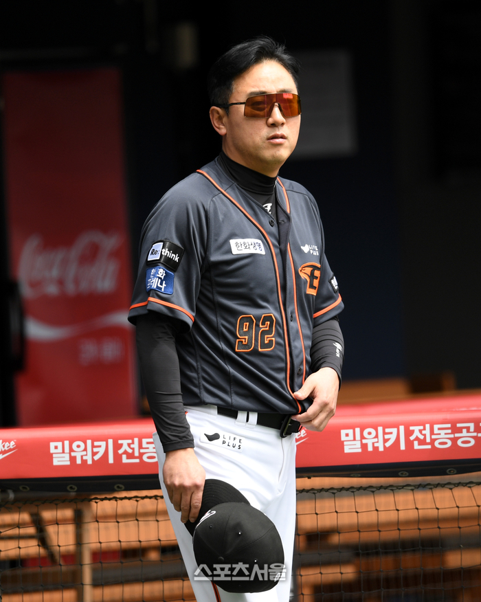 두산 선수들이 훈련을 채 끝내기 전에 워밍업을 마친 한화 선수들이 백네트 쪽으로 모였다. 하나둘 티를 놓더니 타격훈련을 시작했다. 최원호 감독이 부임한 뒤 훈련량이 늘었다는 얘기는 들었지만, 카를로스 수베로 감독 때와 비교하면 변해도 너무 변했다.