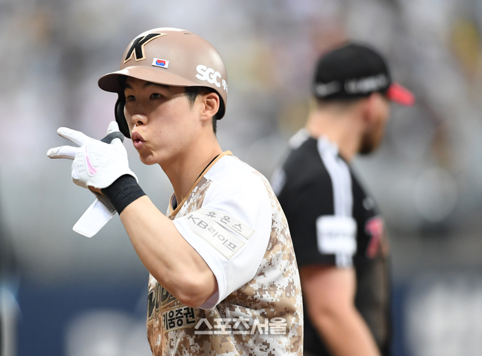 키움 히어로즈 김혜성이 6일 고척스카이돔에서 열린 2023 KBO리그 LG 트윈스와 경기 5회말 LG 선발 켈리를 상대로 안타를 친 뒤 세리머니를 하고 있다. 2023. 6. 6. 고척 | 박진업기자 upandup@sportsseoul.com