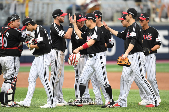 LG 트윈스 선수들이 6일 고척스카이돔에서 열린 2023 KBO리그 키움 히어로즈와 경기에서 키움에 9-1로 승리한 뒤 하이파이브를 하고 있다. LG는 선발 켈리의 5이닝 1실점 호투와 오지환-오스틴의 맹타를 앞세워 3연패 탈출에 성공했다. 2023. 6. 6. 고척 | 박진업기자 upandup@sportsseoul.com