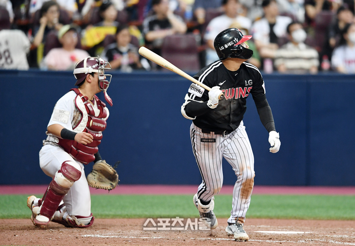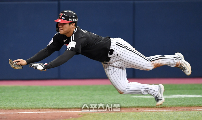 문보경은 6일 고척 키움전에서 6번 타자 3루수로 출전해 4타수 2안타 1타점을 기록했다. 이날 승부에 쐐기를 박는 타점을 올렸는데 그에 앞서 수비와 번트도 이날 경기의 하이라이트였다.
