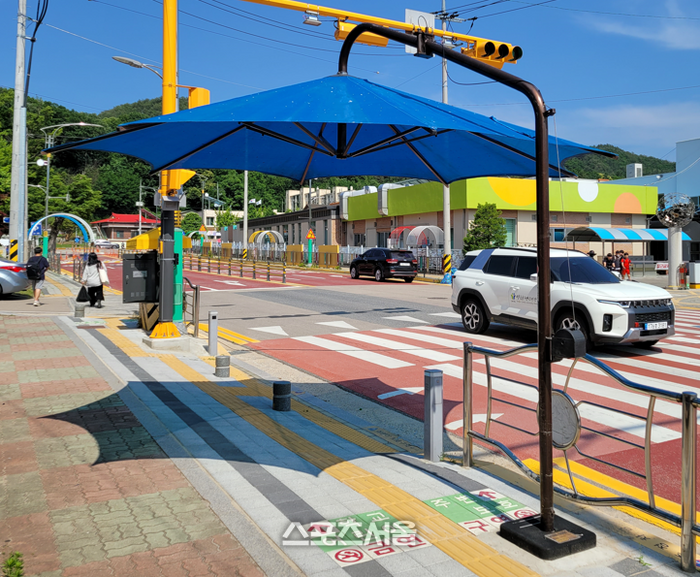 횡단보도 및 유동 인구 많은 장소에 그늘막 설치