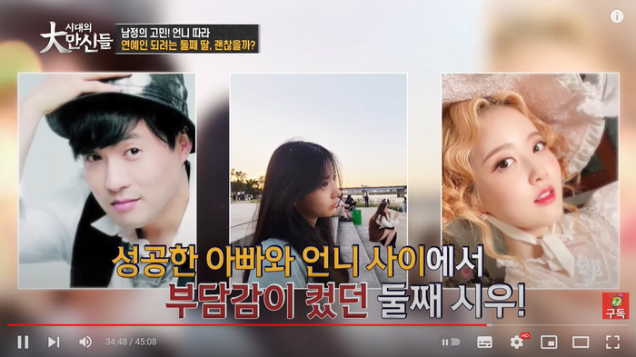 그룹 스테이시로 활동 중인 큰딸 시은에 대해 “원래 연기로 자리를 안정적으로 잡았다. 그런데 연기에서 노래로 진로를 변경했다. 그러면서 연기는 반 포기”라고 말했다.