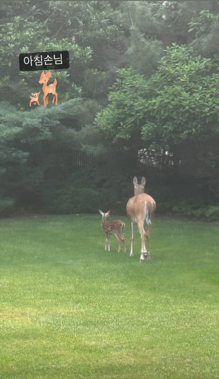 공개한 사진에는 사슴 두 마리의 뒷모습이 있어 호기심을 자아낸다.