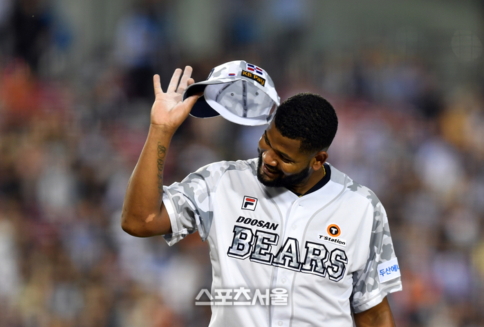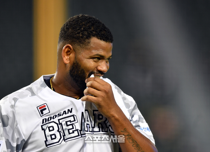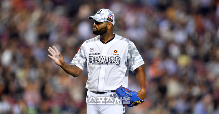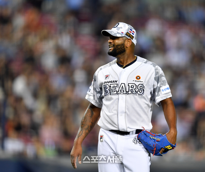 두산 선발투수 알칸타라가 8일 잠실구장에서 열린 2023 프로야구 두산베어스와 한화이글스의 경기 5회초 수비를 마치며 더그아웃으로 향하고 있다. 2023.06.08.
