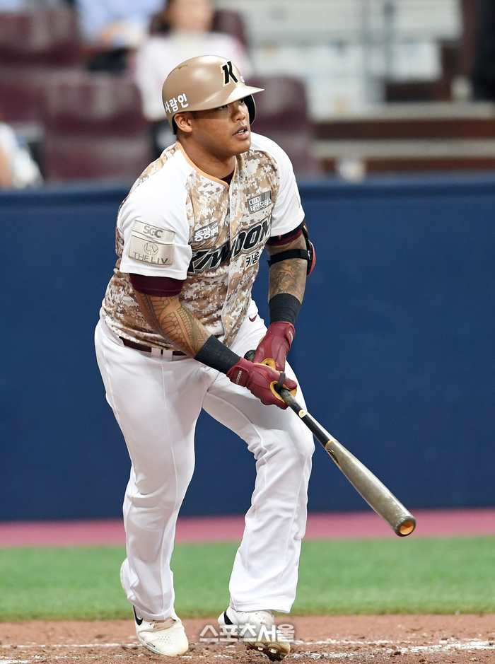 키움 히어로즈 러셀이 8일 고척스카이돔에서 열린 2023 KBO리그 LG 트윈스와 경기 6회말 1사 1-2루 상황에서 LG 최성훈을 상대로 안타를 치고 있다. 러설의 경기 네 번째 안타로 데뷔 첫 4안타. 2023. 6. 8. 고척| 박진업기자 upandup@sportsseoul.com