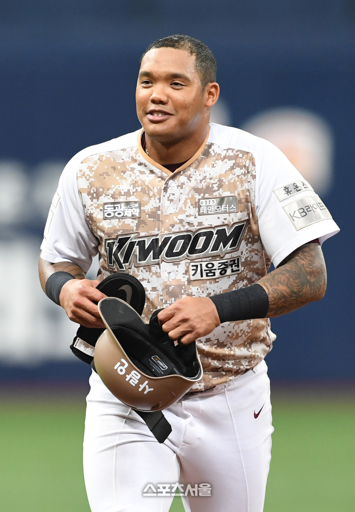 키움 히어로즈 러셀이 8일 고척스카이돔에서 열린 2023 KBO리그 LG 트윈스와 경기 6회말 1사 1-2루 상황에서 대주자로 교체되면서 밝게 웃고 있다. 러셀은 6회까지 4안타를 몰아치며 KBO 리그 데뷔 첫 4안타 경기를 기록했다. 2023. 6. 8. 고척| 박진업기자 upandup@sportsseoul.com