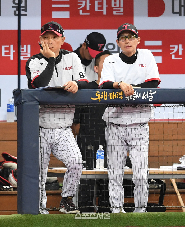 LG 트윈스 염경엽 감독(오른쪽)이 8일 고척스카이돔에서 열린 2023 KBO리그 키움 히어로즈와 경기 9회초 팀의 마지막 공격을 지켜보고 있다. LG는 키움에 0-13으로 완패했다. 2023. 6. 8. 고척| 박진업기자 upandup@sportsseoul.com