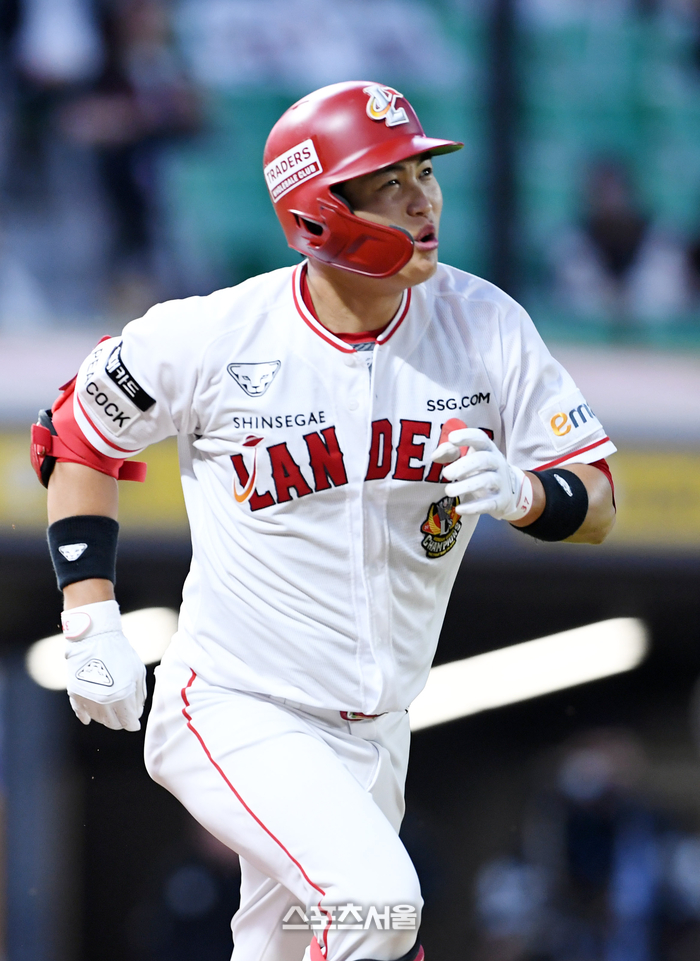 7회초 SSG가 재역전에 성공했다. 선두 김민식이 우월 솔로 홈런을 쐈다. 4-4 동점. 최지훈이 유격수 실책으로 출루한 후 도루까지 성공했다. 박성한도 스트라이크 아웃 낫아웃으로 1루에 나갔고, 2루를 훔쳤다. 1사 2,3루 기회. 최정이 좌익수 희생플라이를 날려 5-4가 됐다. raining99@sportsseoul.com