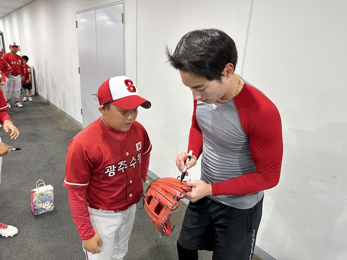 경기 외적으로도 좋은 시간이 있었다. 8일 경기에 앞서 모교인 광주수창초 야구부 학생 29명과 만났다. 광주수창초 류창희 감독과 인연으로 만남이 성사됐다. 류창희 감독은 최지훈이 재학 당시 코치였다.