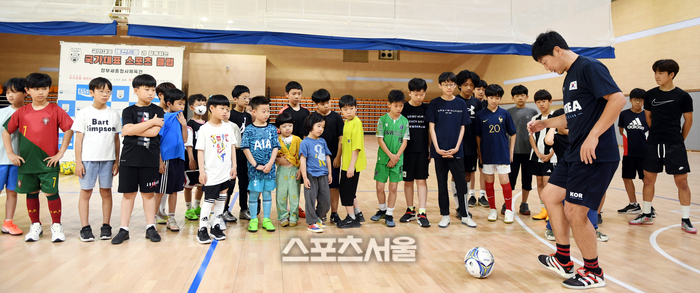 전 축구국가대표 송종국이 10일 세종 정부종합청사체육관에서 열린 국가대표 스포츠 클럽 행사에서 참가자에 패스 방법을 강의하고 있다. 2023. 6. 10. 세종 | 최승섭기자 thunder@sportsseoul.com