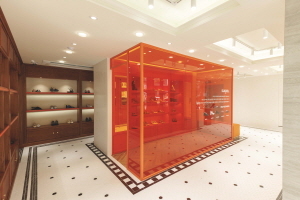 까렐 한남 플래그십 스토어는 1950~1960년대 빈티지한 파리지앵 아파트를 콘셉트로 내부를 꾸몄다. 브랜드 상징 색인 오렌지 컬러를 메인으로 우드 소재를 더했고 트래버틴 타일과 프렌치 무드의 어닝을 장식해 파리 분위기를 냈다.
