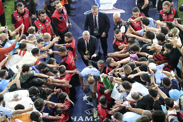 이날 아타튀르크 올림픽 스타디움에는 맨시티 구단주 만수르가 등장했다. 만수르는 지난 2010년 8월 리버풀과의 리그 경기 이후 무려 13년 만에 경기장을 찾은 것이다. 만수르는 안경을 끼고 맨시티 머플러는 목에 두른 채 경기를 지켜봤다.