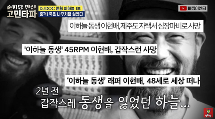 12일 ‘베짱이엔터테인먼트’에는 ‘충격! DJDOC 이하늘! 죽은 나무처럼 살았다... #순화당만신 #고민타파’라는 제목의 영상이 게재됐다.