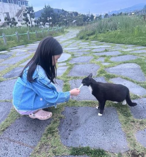 특히 고양이와 교감하는 딸의 모습이 눈길을 끌었다. 다정하게 쪼그려 앉아 눈높이를 맞추는 모습에서 아름다운 마음씨를 엿볼 수 있다.