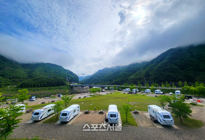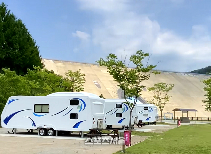 [스포츠서울ㅣ화천=김기원 기자] 화천 평화의 댐 오토 캠핑장 내 카라반 시설이 새로운 명소로 인기를 끌고 있다.
