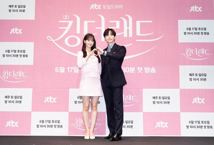 ‘킹더랜드’는 가식적인 미소를 견디지 못하는 재벌후계자가 원치 않을 때도 직업상 언제나 밝은 미소를 지어야만 하는 여자를 만나 진짜 환하게 웃을 수 있는 날을 만들어가는 이야기다. 이준호는 재벌 후계자이자 킹호텔 신입본부장 구원 역을, 임윤아는 킹호텔 인턴사원으로 입사해 호텔리어의 꿈인 VVIP 라운지 ‘킹더랜드’에 입성하는 천사랑을 연기한다.