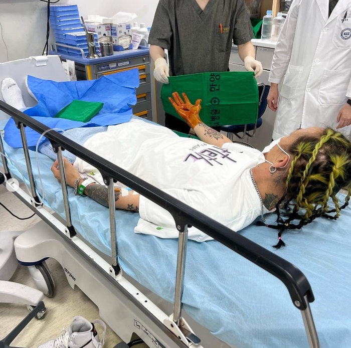 함께 공개한 사진 속에는 손가락에서 피가 흐르는 모습이 담겼다. 게다가 치료를 위해 팝핀현준은 병원으로 이동했고 병실 침대에 누워 있어 팬들의 걱정을 끼쳤다.
