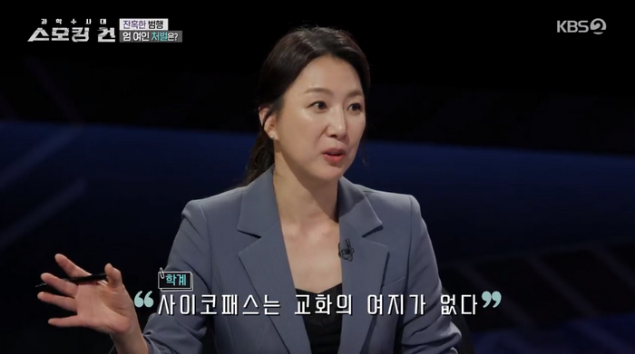 이날 방송에 출연한 프로파일러 김윤희는 “엄여인이 재판받던 때에는 사이코패스가 교화의 여지가 있다고 했다. 하지만 현재 학계에서는 사이코패스는 교화의 여지가 없다는 시각이 대부분”이라고 전했다.