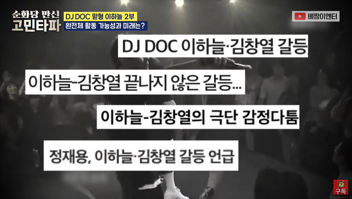 이어서 그룹 DJ DOC 재결합 여부로 이야기를 나눴다. 무당은 단도직입적으로 “팀 활동은 안 될 것 같다”라고 말했다. 이어서 “이하늘 씨가 형의 도리를 한 걸로 안다. 상대방이 어떻게 받아들이고 실타래를 어떻게 푸느냐는 아직도 겨울인 것 같다”라며 이하늘과 김창열의 갈등을 언급했다.