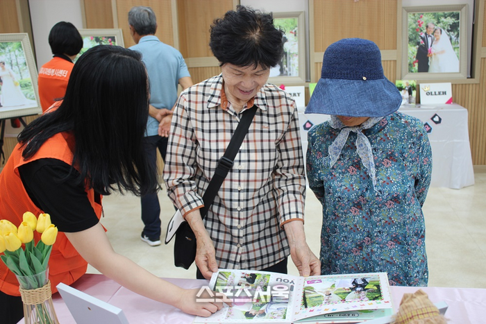 웨딩 전시회에서는 어르신, 장애인, 다문화 부부 12쌍의 모습을 담은 웨딩 액자와 앨범으로 제작·전시함으로써 지난 5월 23일(화) ~ 24일(수) 양일간 진행된 리마인드 웨딩촬영 당시의 감동을 재현하는 계기가 되었다.