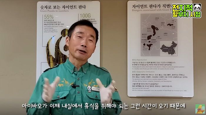 강철원 사육사는 “아이바오가 당분간 내실에서 안정을 취해야 한다. 그래서 방문객 여러분들과는 만나지 못한다”고 전해 아쉬움을 남겼다.