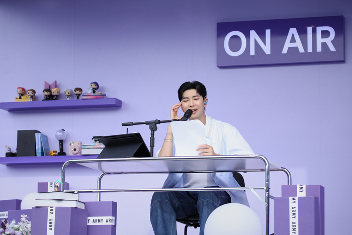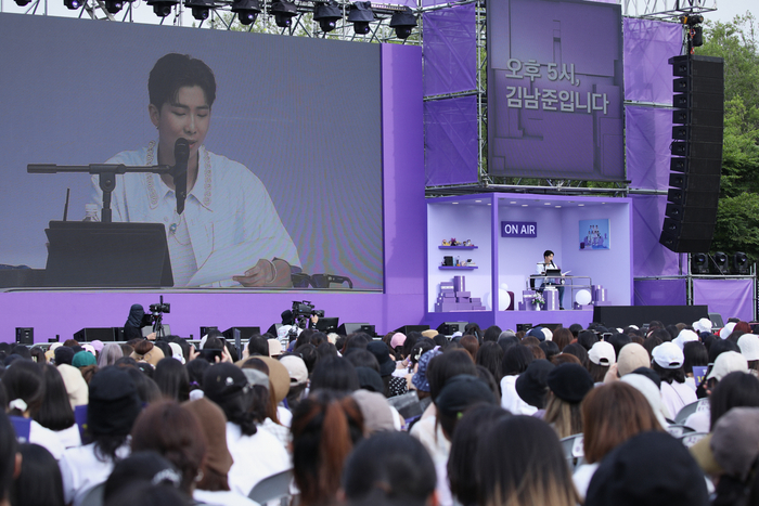 17일 오후 5시 여의도 한강공원 내 마련된 ‘아미 라운지’에 RM이 직접 등장해 ‘오후 5시, 김남준입니다’라는 이름으로 특별 코너를 진행했다. 이날 현장에는 3000여 명의 아미가 아미봉(응원봉)을 힘차게 흔들며 RM을 맞았다. RM은 이 자리에서 팬과 직접 소통하며 10주년을 맞은 소회를 밝혔다.