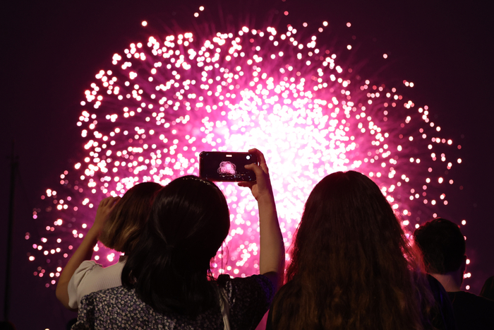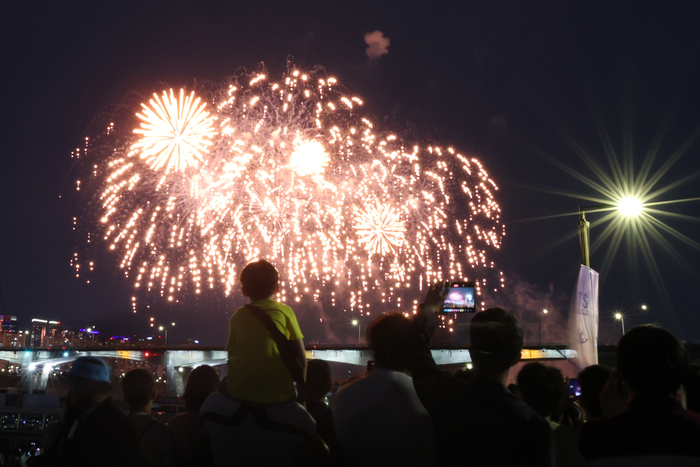 아름다운 한강을 배경으로 불꽃이 쏟아지자 환상적인 분위기가 배가됐다. 팬들은 “너무 멋있다”, “감동적인 순간”이라며 감탄을 연발했다. 이날 불꽃쇼는 현장이 아닌 위버스 라이브로도 진행됐는데 오후 8시 50분 기준 접속자 수가 350만명을 넘어섰다.