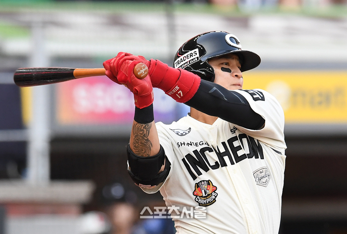 SSG 랜더스 추신수가 18일 인천 SSG랜더스필드에서 진행된 2023 KBO리그 롯데 자이언츠와 경기 5회말 1사 1루 상황에서 롯데 선발 반즈를 상대로 안타를 치고 있다. 2023. 6. 18. 문학 | 박진업기자 upandup@sportsseoul.com