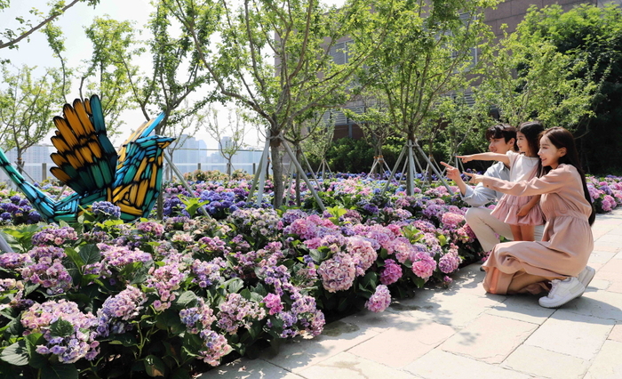 신세계는 블루·퍼플·핑크 등 형형색색의 수국 3만여 송이와 함께 연출될 예정이라고 밝혔다.