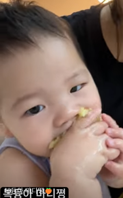 영상 속에는 홍현희 제이쓴의 부부 준범이가 복숭아를 입에 한가득 먹고 있다. 떡잎부터 다른 먹방 실력에 홍현희도 웃음을 참지 못했다.