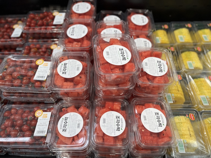 그뿐만 아니다. 신세계의 편의점 브랜드 이마트24는 다양한 콘셉트의 수박을 출시했다. ‘고당도 통수박 6~7kg’, ‘껍질없는 반통수박 2.4kg’, ‘순살수박 480g’ 등을 판매하고 있다. 1인 가구가 급증함에 따라 이마트24의 껍질없는 반통수박, 아침을 여는 컵수박과 같은 상품의 인기가 높아지고 있다.