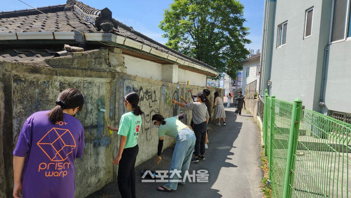 이들 단체는 6월 3일(토), 4일(일), 17일(토)까지 청소년 유동인구가 많고 70미터에 달하는 내고향마트 뒷골목(가정집 담장 3곳, 콘테이너, 건물 담장 등)을 3회에 걸쳐 벽화활동을 진행했다.