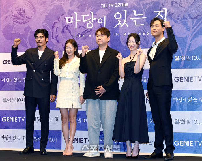 19일 오후 서울 마포구 상암동 스탠포드 호텔에서 지니tv 오리지널 드라마 ‘마당이 있는 집’(극본 지아니, 연출 정지현) 제작발표회가 열렸다. 이 자리에는 배우 김태희, 임지연, 김성오, 최재림, 정지현 감독, MC 박경림이 참석했다.