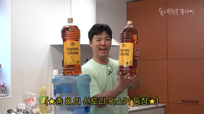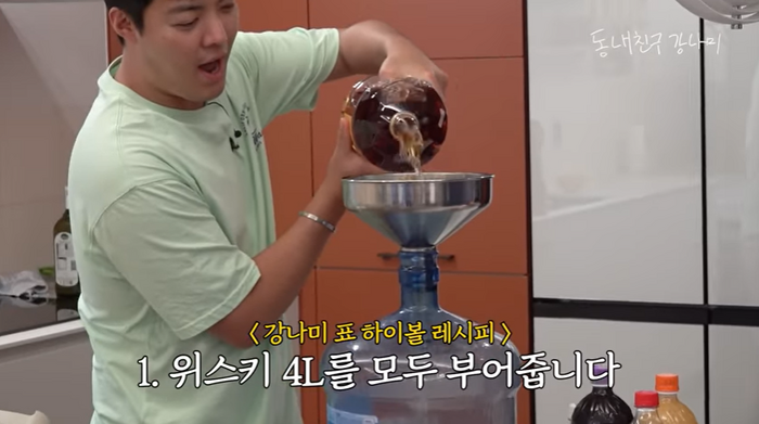 두 통 위스키의 가격은 한화로 약 15만 원. 강남은 이를 정수기에 넣고 하이볼 정수기 만들겠다고 밝혔다.