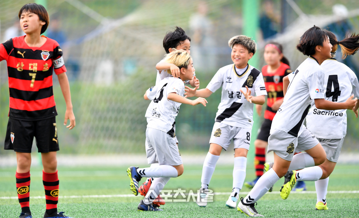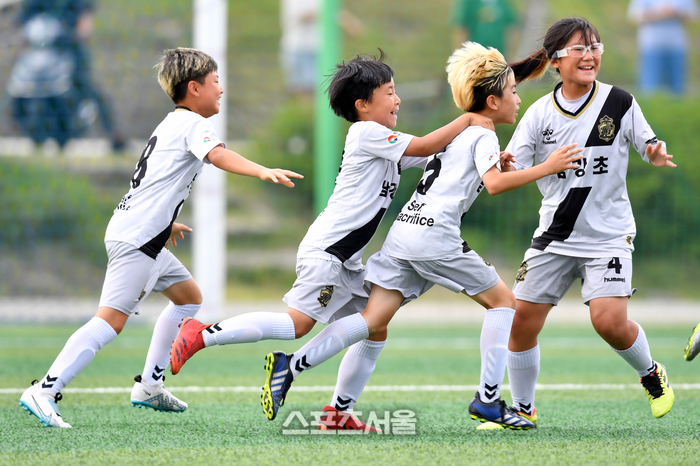 남강초 고경민이 20일 합천 황강군민체육공원에서 열린 제31회 여왕기 전국여자축구대회 초등부 4강전 경북상대초와 경남남강초의 경기에서 선제골을 성공시키고 있다. 2023.06.20.