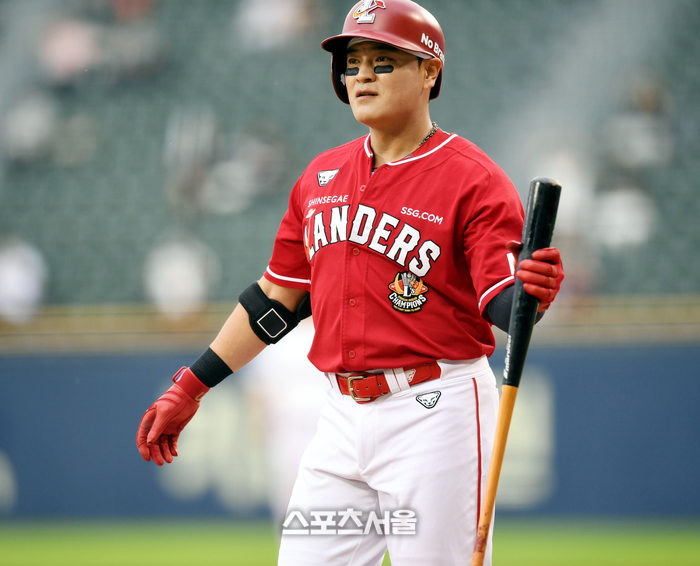 SSG 추신수가 20일 잠실야구장에서 열린 2023 KBO리그 두산과 경기 1회초 헛스윙 삼진아웃을 당한 후 아쉬워하고 있다. 2023. 6. 20. 잠실 | 최승섭기자 thunder@sportsseoul.com