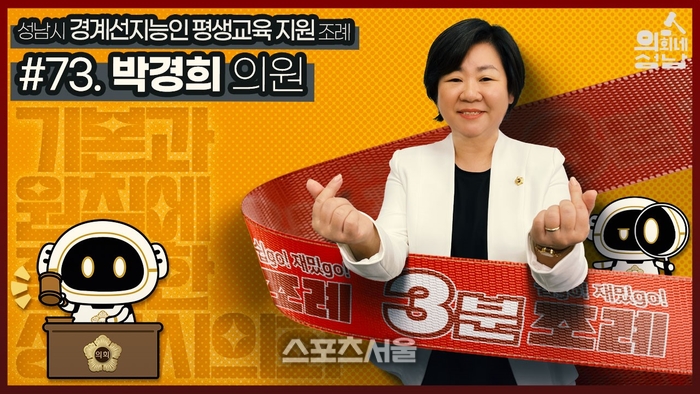〔스포츠서울│성남=좌승훈기자〕성남시의회는 ‘3분 조례’ 영상으로 박경희 의원 등 17명이 발의한 ‘경계선지능인 평생교육 지원 조례’를 시의회 공식 SNS에 21일 게시했다.