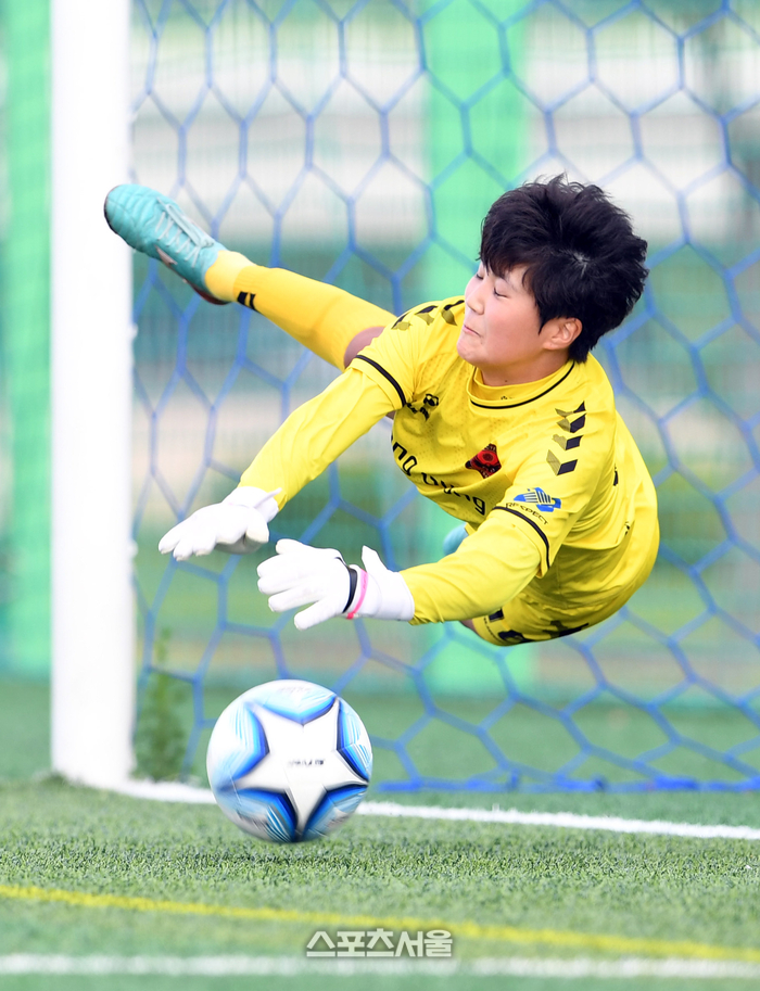 충남 강경여중 골키퍼 김시현이 22일 경남 합천 황강군민체육공원에서 열린 '웰니스 힐링명품도시 합천에서 펼쳐지는 제31회 여왕기 전국여자축구대회' 중등부 설봉중과 8강 경기 승부차기에서 상대 슛을 막아내고 있다. 2023.06.22. 합천 | 박진업기자 upandup@sportsseoul.com