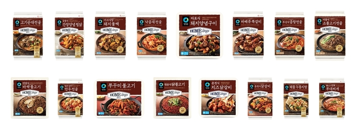 △언양식 바싹 불고기 △청송식 닭불고기 △서울식 소불고기전골 △부산식 곱창전골 △낙곱새전골 △기사식당 돼지불백 △바베큐 쪽갈비 △춘천식 닭갈비 △얼큰김치 만두전골 △궁중식 간장양념찜닭 △햄&고기듬뿍 부대찌개 △고기순대전골 △해물누룽지탕 등 13종은 각 요리에 필요한 모든 재료가 손질된 상태로 들어있어 10분 내로 요리가 완성된다. △춘천식 치즈 닭갈비 △마포식 돼지양념구이 △쭈꾸미불고기는 전자레인지 조리만으로도 간편하게 즐길 수 있다.