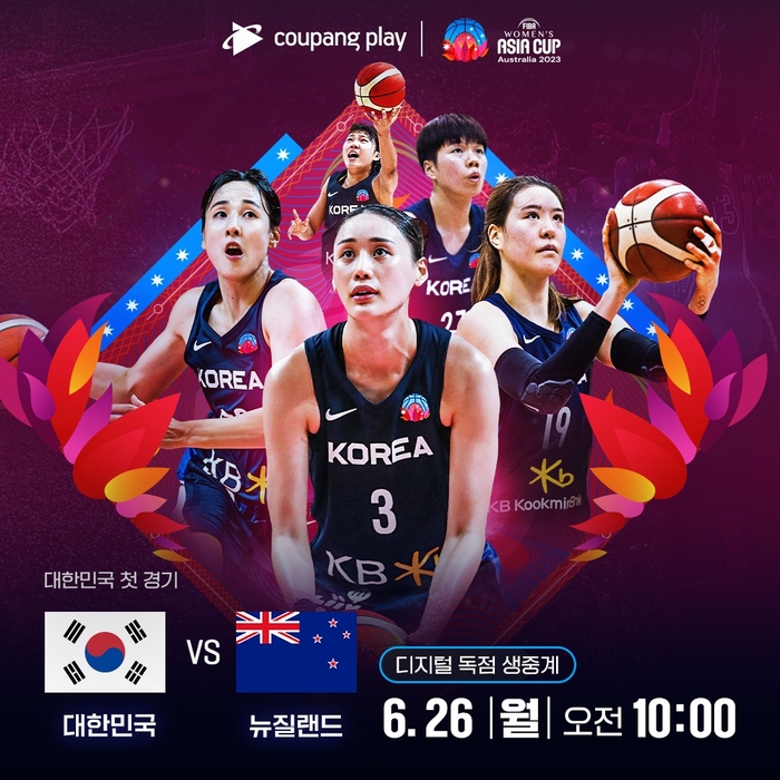 여자 농구대표팀은 오스트레일리아 시드니에서 열리는 2023 FIBA 아시아컵에서 26일 오전 10시 뉴질랜드를 시작으로 레바논(27일 오전 10시), 중국(28일 오후 4시)과 각각 경기를 치른다.